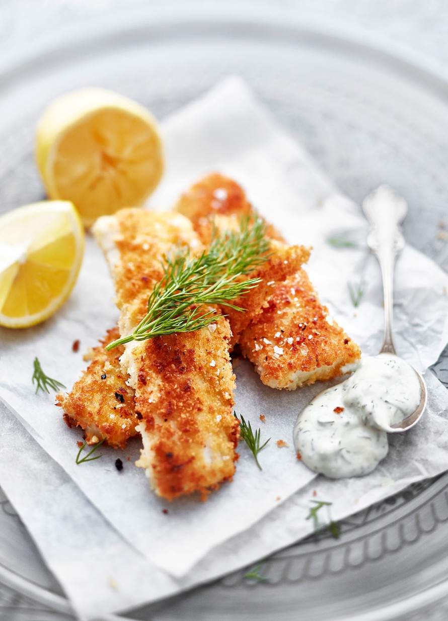 Kevyesti leivitetyt kotikalapuikot pesevät mennen tullen pakastealtaasta ongitut puikot.