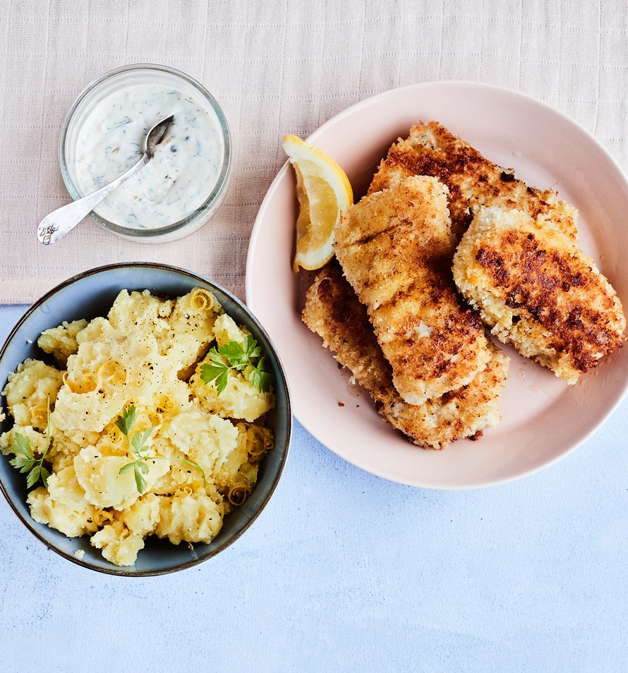 Muodolla ei ole väliä, maku ratkaisee! Parmesaanin ja pankojauhojen yhdistelmä tekee XL-kalapuikkojen pinnasta ekstrarapean ja maukkaan. Kalapuikkojen kanssa maistuvat murskatut sitruunapotut ja helppo tartarkastike.