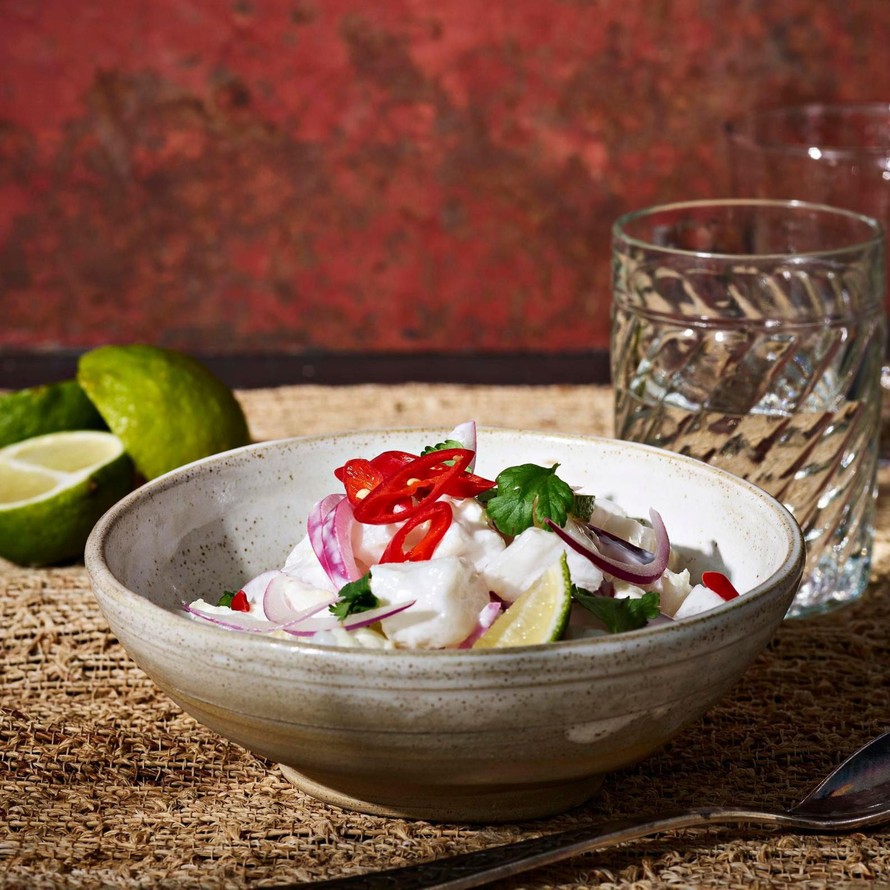 Cevichen filippiiniläisversion nimi on kinilaw, ja sen happona käytetään kookosetikkaa. Suomesta moista erikoisuutta ei saa, mutta sen voi korvata hyvin valkoviinietikalla.