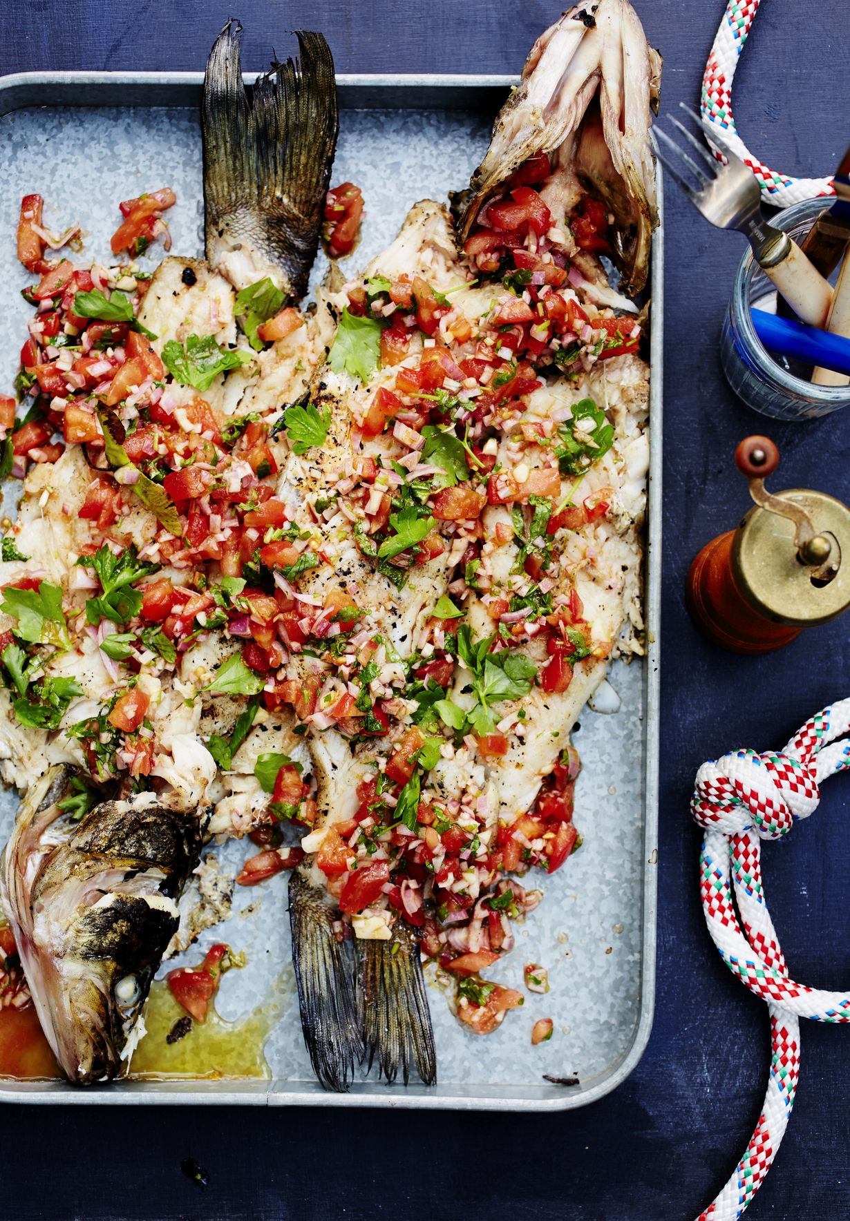 Kun grillaat kokonaisen kalan portugalilaisittain avattuna perhoseksi, se kypsyy todella nopeasti ja tasaisesti. Sillä välin ehdit tehdä escabeche-kastikkeen. Sen pohjana on vinegretti, johon tulee tavallista reilummin etikkaa ja valkoviiniä. Oikea makuilotulitus!