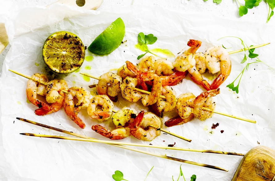 Simppeliä! Kylvetä jättikatkaravut pikantissa marinadissa ja hehkuta pikaisesti grillissä.