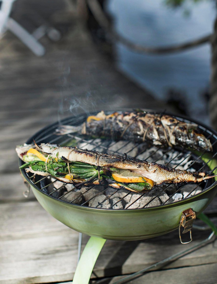 Grillatuista sitruunanpuolikkaista puristat kalojen päälle ihanan pehmeän makuista mehua. Muita kastikkeita ei välttämättä tarvita.