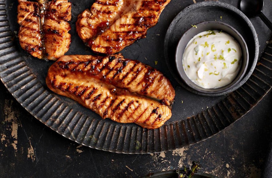 Yksinkertaisen ihana grillilohi luottaa valkosipulimarinadiin, jossa sipulit saavat grillistä makua.