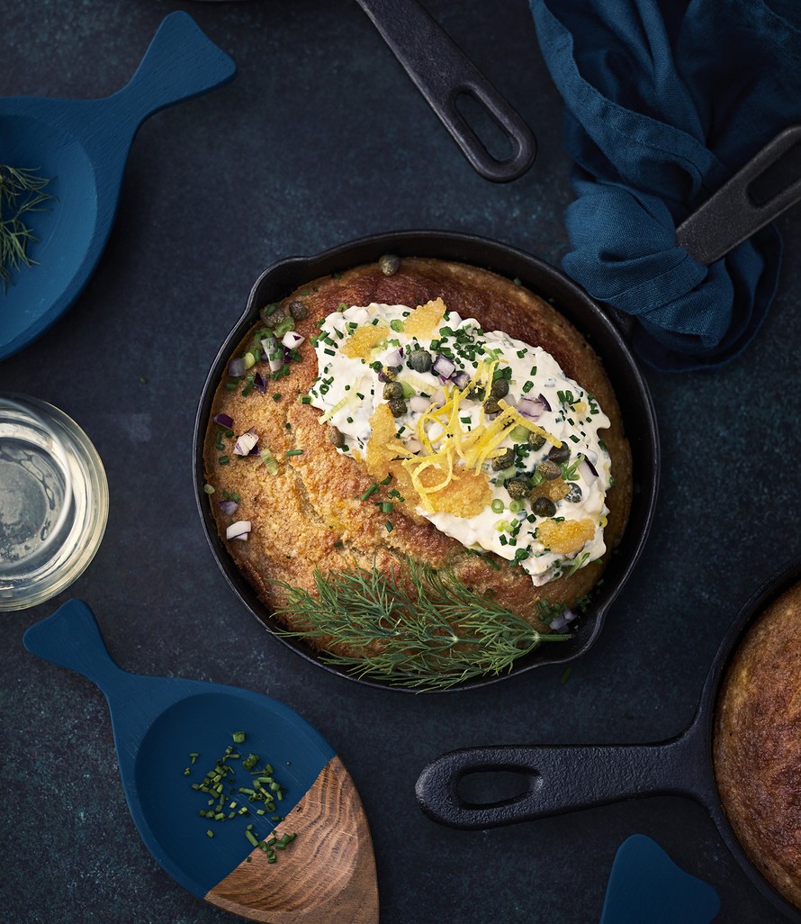 Äkilliseen blinihimoon toimivat leivinjauheella kohotetut uuniblinit. Ne täytetään raikkaalla savulohitahnalla.