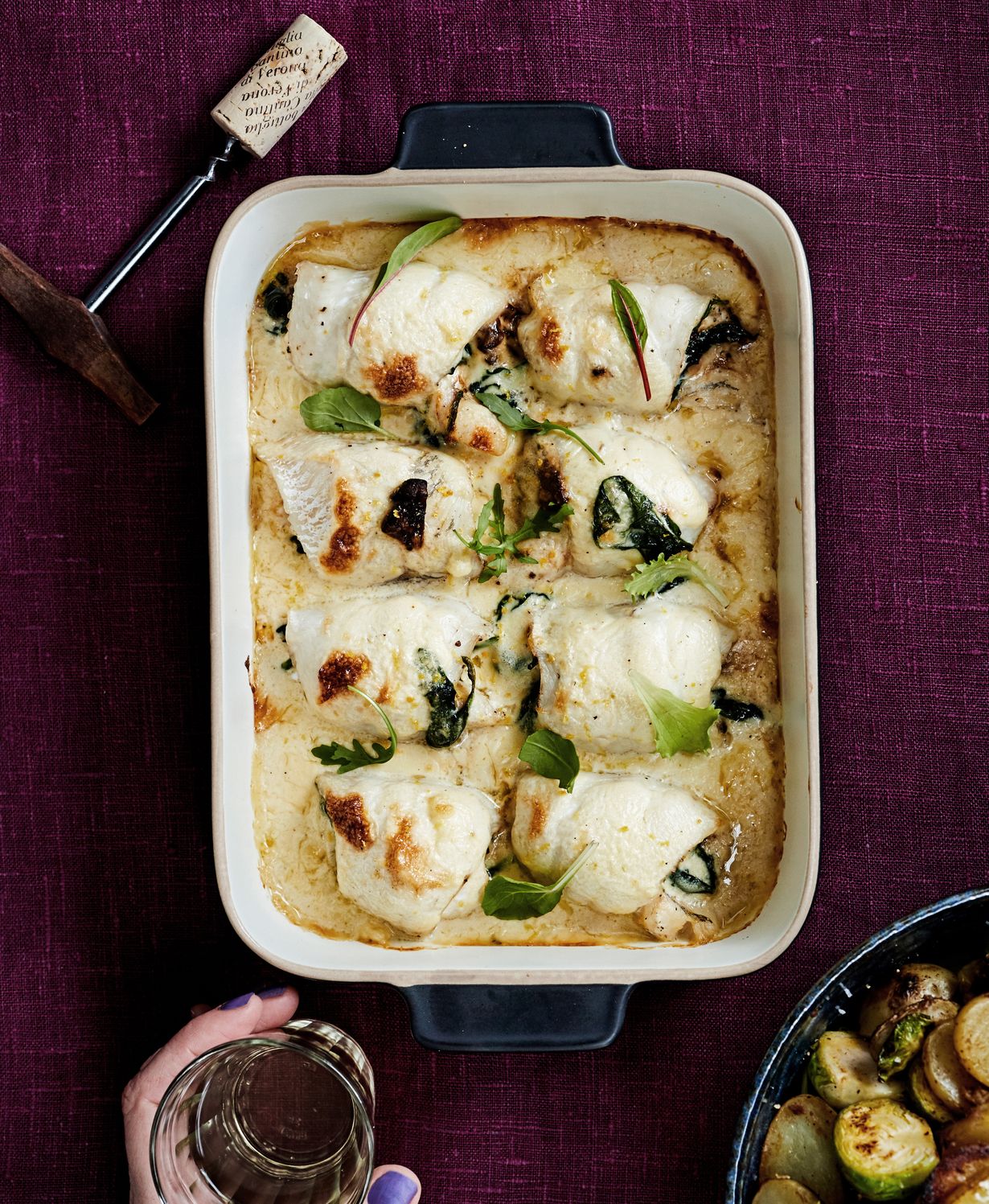 Pinaatilla ja tateilla täytetyt kuharullat