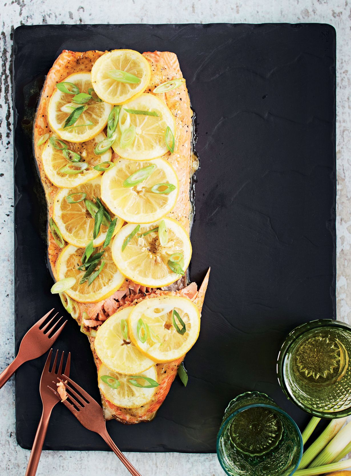 - Paista 200-asteisessa uunissa noin 25–30 minuuttia, kunnes lohi on mehevän kypsää.