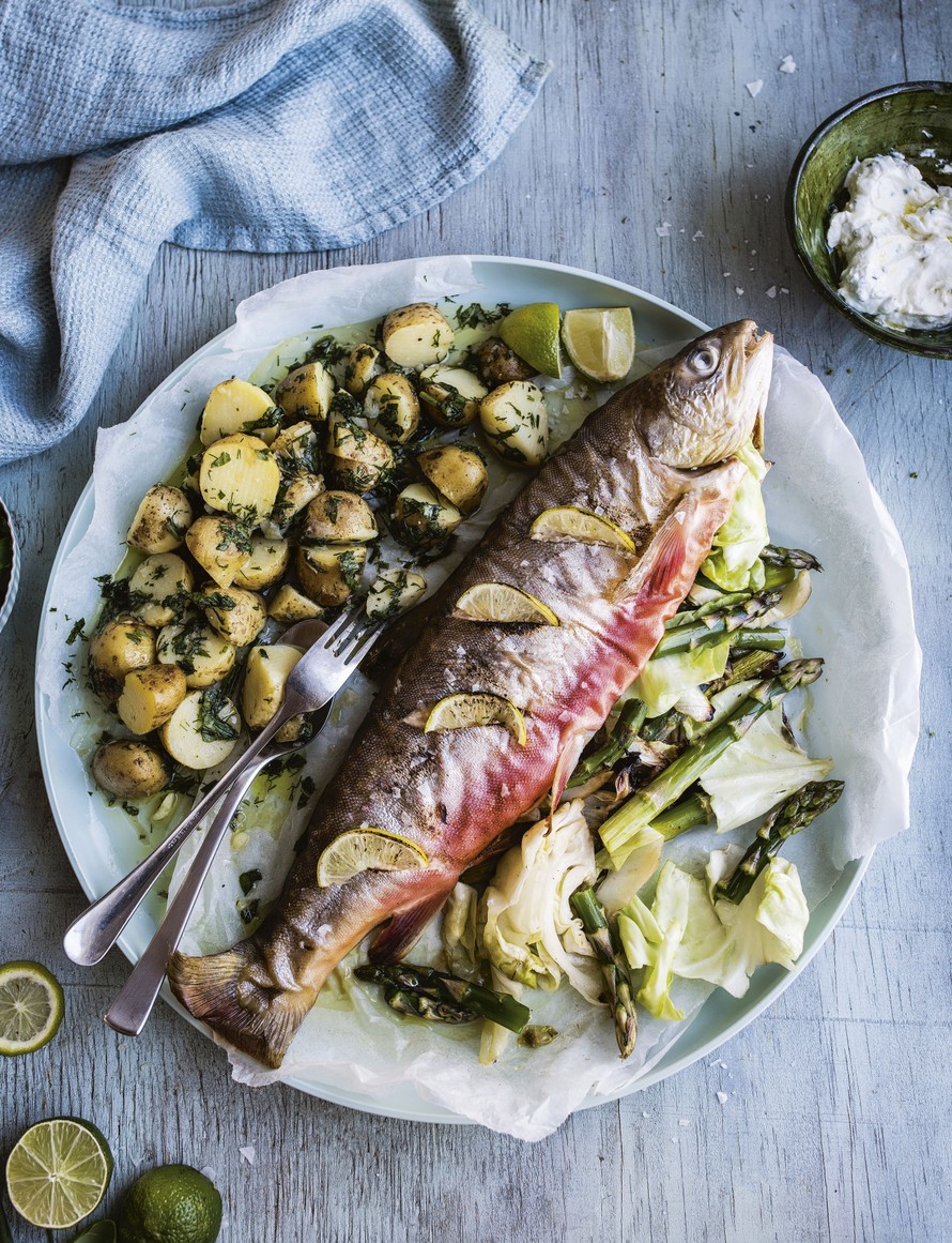 Täytä nieriä limetillä, parsalla ja varhaiskaalilla ja grillaa kesän mehevin kala. Muista laittaa labneh valumaan jo valmistusta edeltävänä päivänä.
