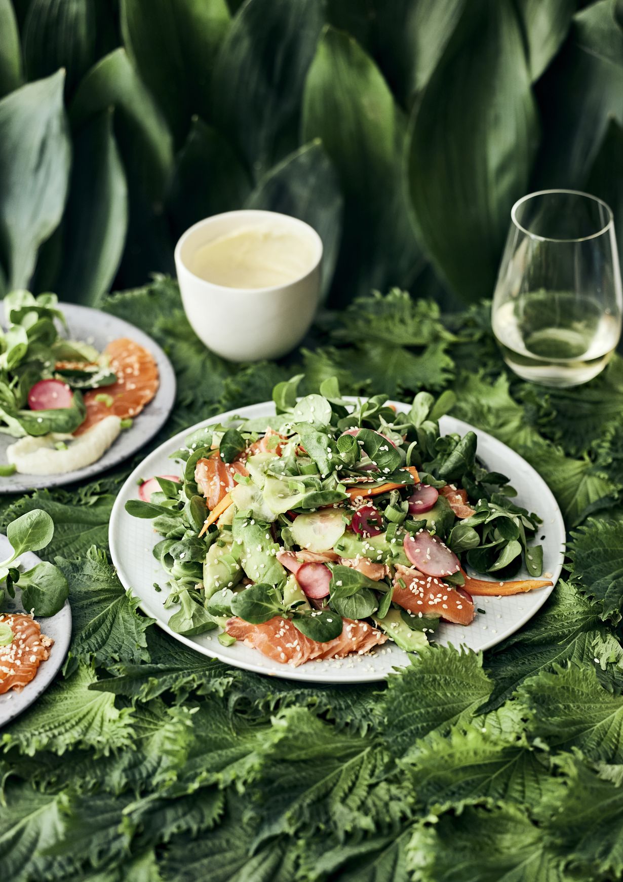 Sekoita majoneesi ja wasabitahna keskenään ja tarjoa salaatin kanssa.