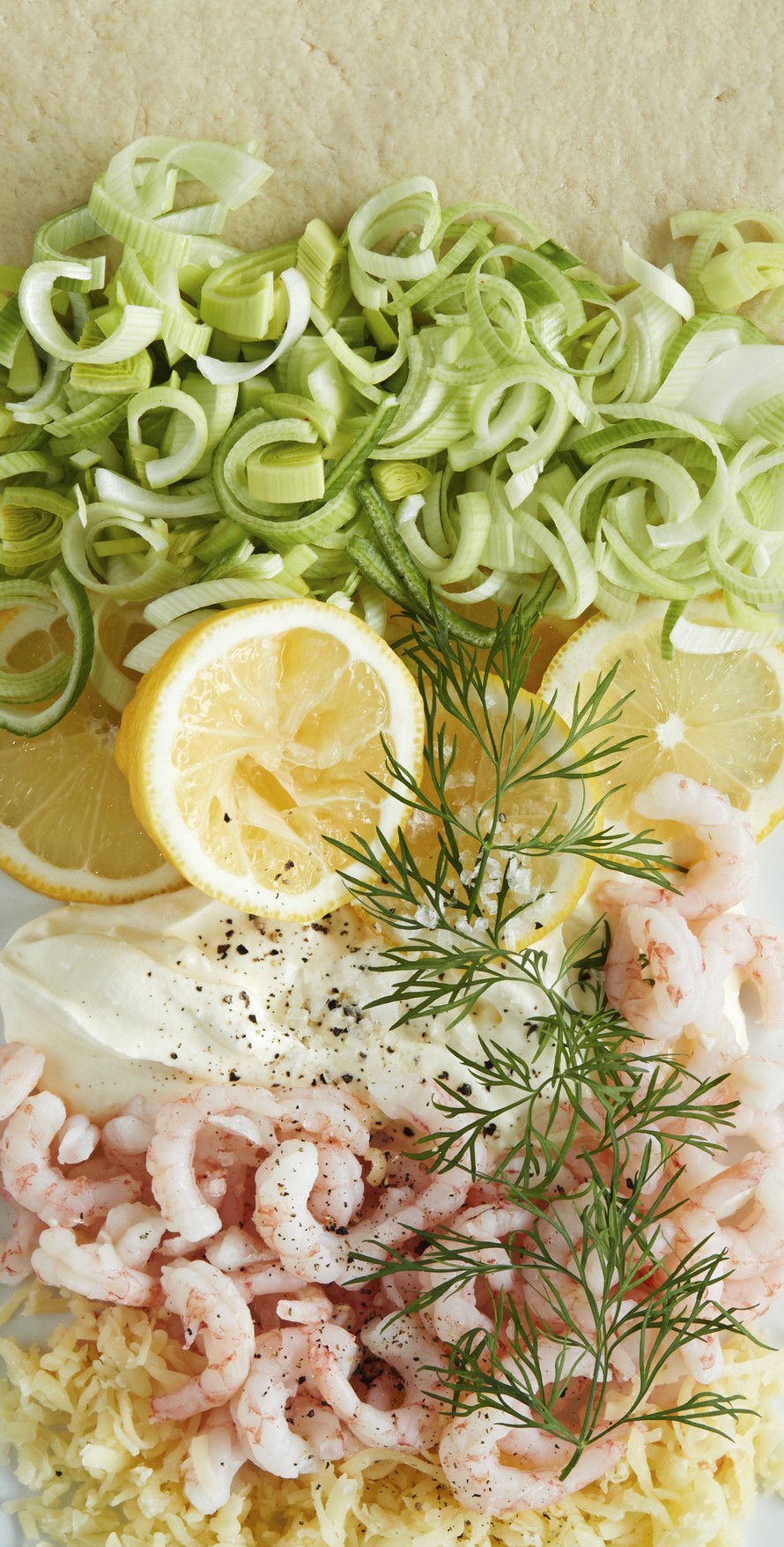 Ihanan raikas suolaisen piirakan täyte syntyy katkaravuista, sitruunasta ja tillistä. Valmistaikinan ansiosta piirakka on nopeasti valmis uuniin.