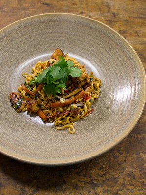 Mikko Kuustosen illallisella Vain elämää -ohjelmassa syödään thaimaalainen kattaus: kookos-kasviswokkia, chili-inkiväärikatkarapuja ja "som tam" -salaattia mangosta.