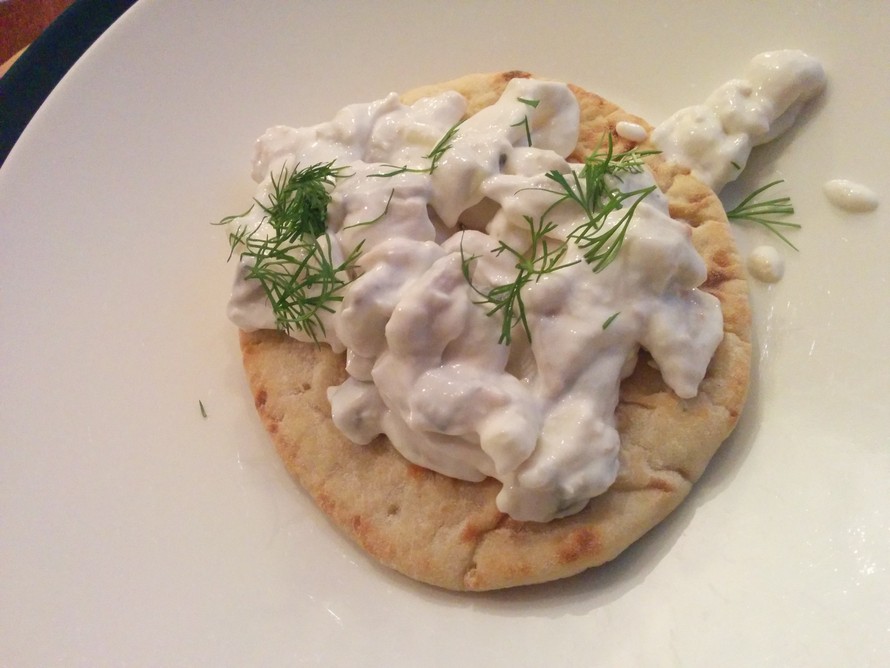 - Raasta noin 1 rkl piparjuurta ja pilko fenkolinpalat hienoksi. Murskaa rosepippurit huhmareessa. Lisää hieman suolaa. Sekoita kaikki em. ainekset kaurafraicheen ja anna maustua yön yli.
