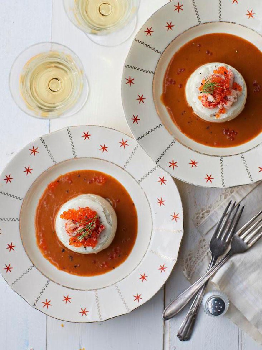 Kuohkea haukitimbaali on klassisen tyylikäs alkuruoka. Tällä kertaa se tarjotaan äyriäiskastikkeen seurassa.