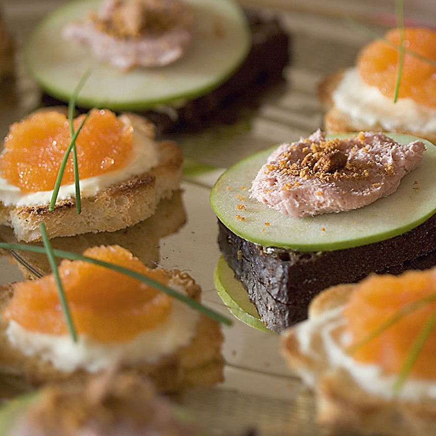 - Levitä jäähtyneille leiville smetana ja lusikoi päälle mäti. Koristele ruohosipulilla.