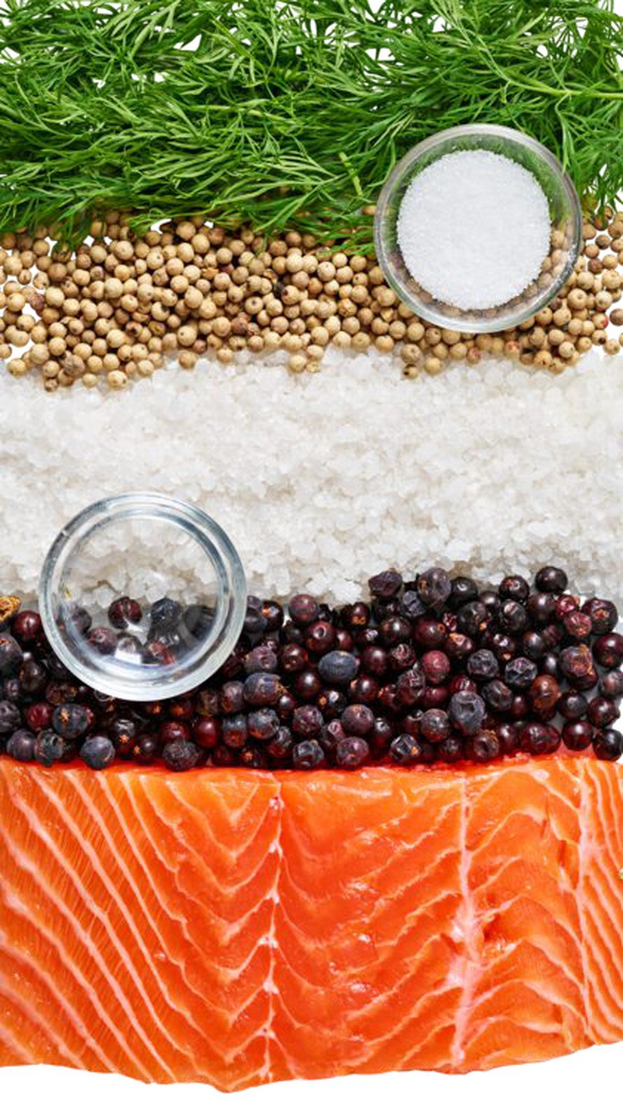 Sekoita suola, sokeri, katajanmarjat ja valkopippuri keskenään. Hiero seos lohen lihapuolelle. Valuta pinnalle gini. Leikkaa tillinvarret muutamaan palaan ja painele ne kalan päälle.