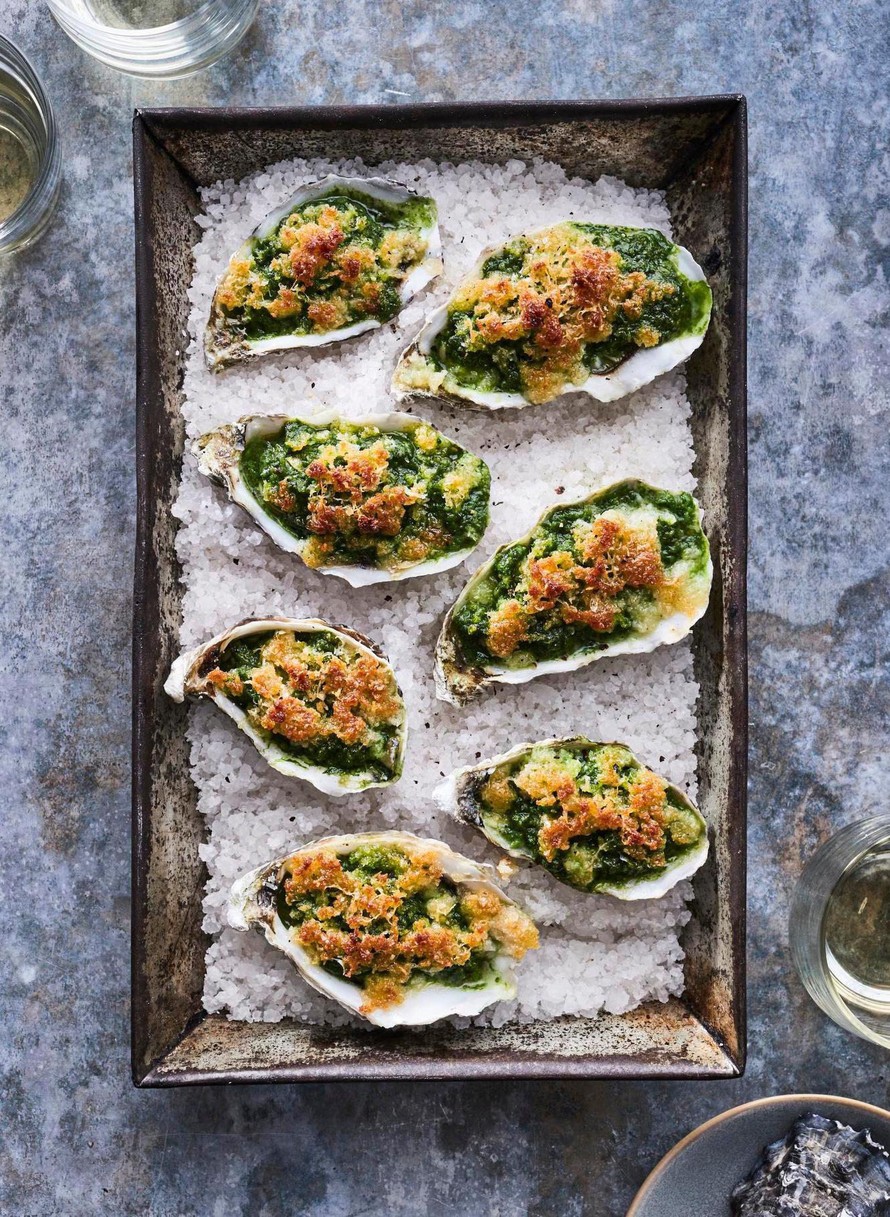 Nopea gratinointi kypsyttää osterit juuri suuhun sopiviksi. Yrttinen täyte ja rapsakka kuorrutus tekevät näistä ostereista erityisen meheviä.