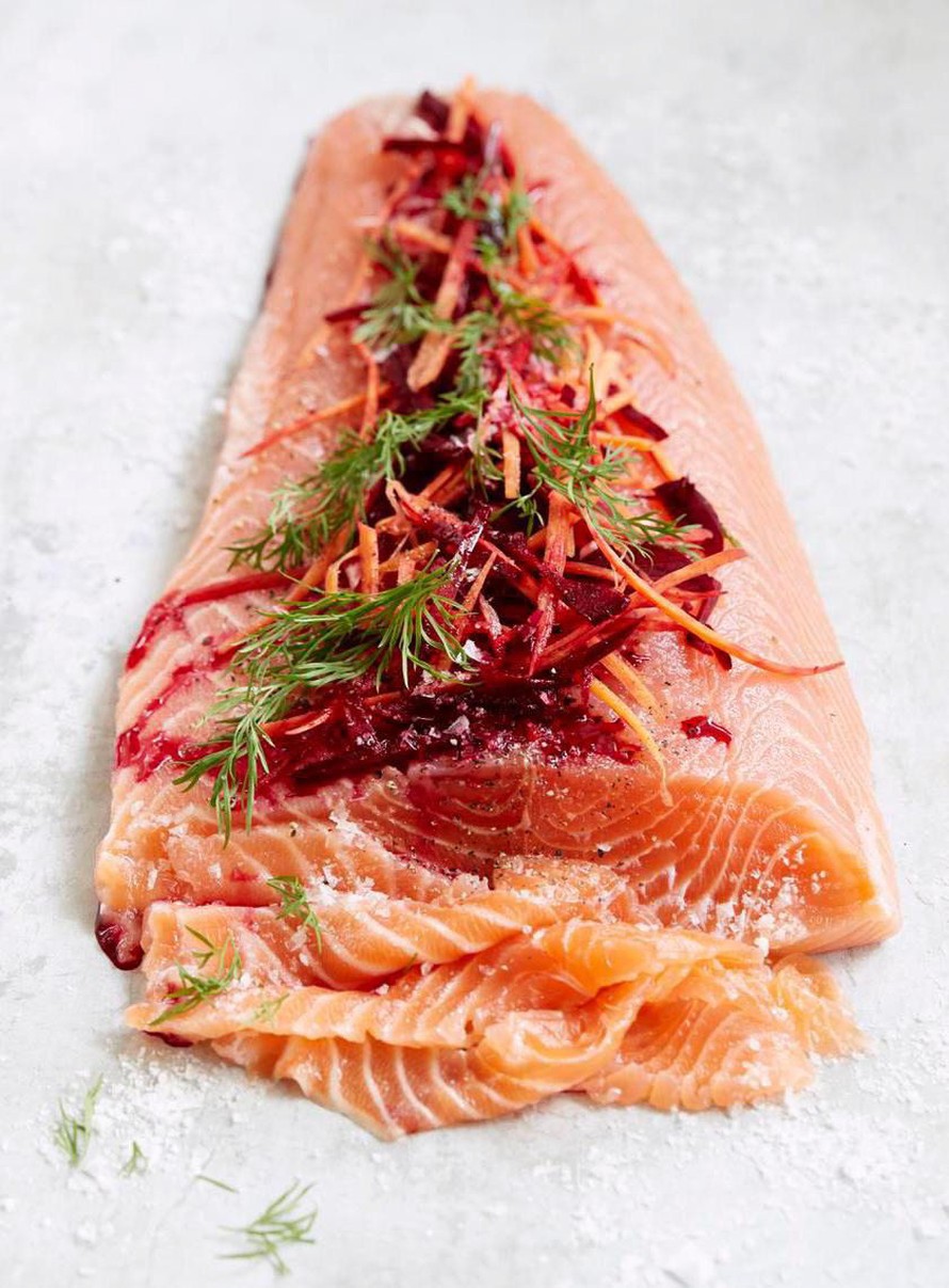 - Pyyhi lohen pinta ja leikkaa annospaloiksi graavikalan tapaan.