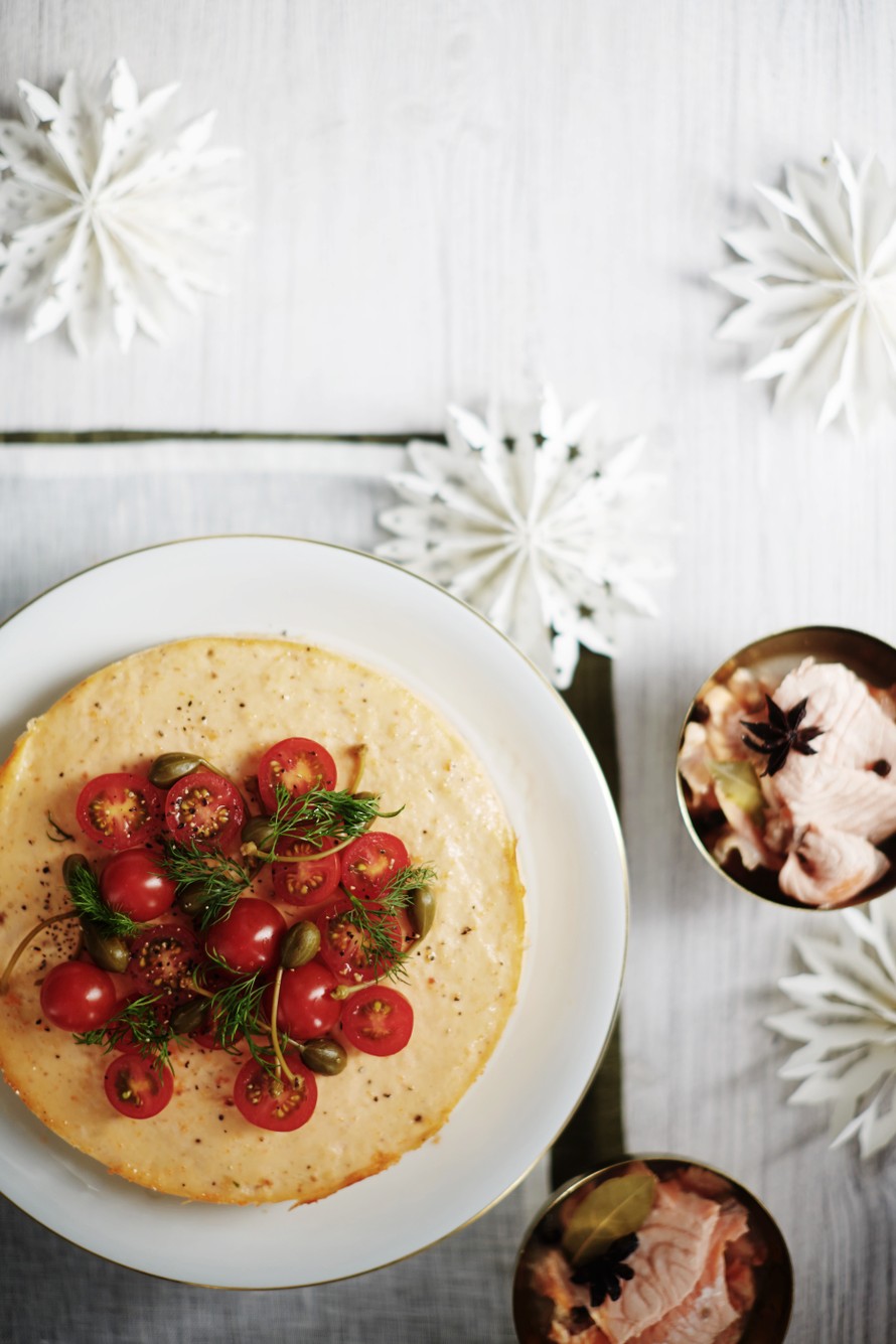 - Ota patee uunista ja kumoa jäähtyneenä. Koristele ennen tarjoilua tillillä, kapriksilla ja kirsikkatomaateilla.