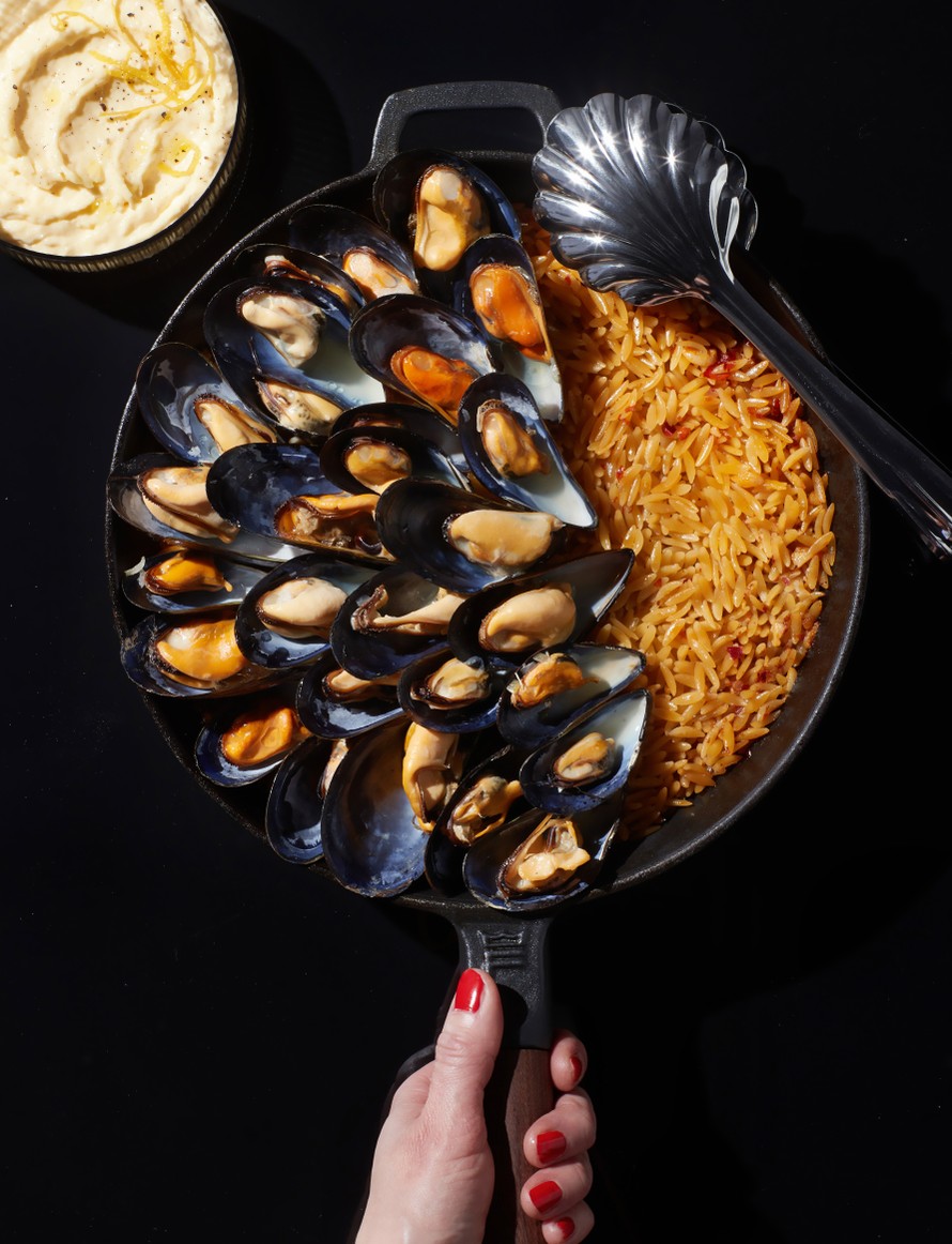 Vinkki Pastaa ei kannata sekoitella enää kypsennyksen loppuvaiheessa. Näin orzo saa muodostaa kauniin helmimäisen pinnan. Simpukat voi latoa tarjolle joko pastan päälle tai erikseen kulhoon. Kata pöytään myös lautanen syödyille simpukoille sekä kosteuspyyhkeitä.