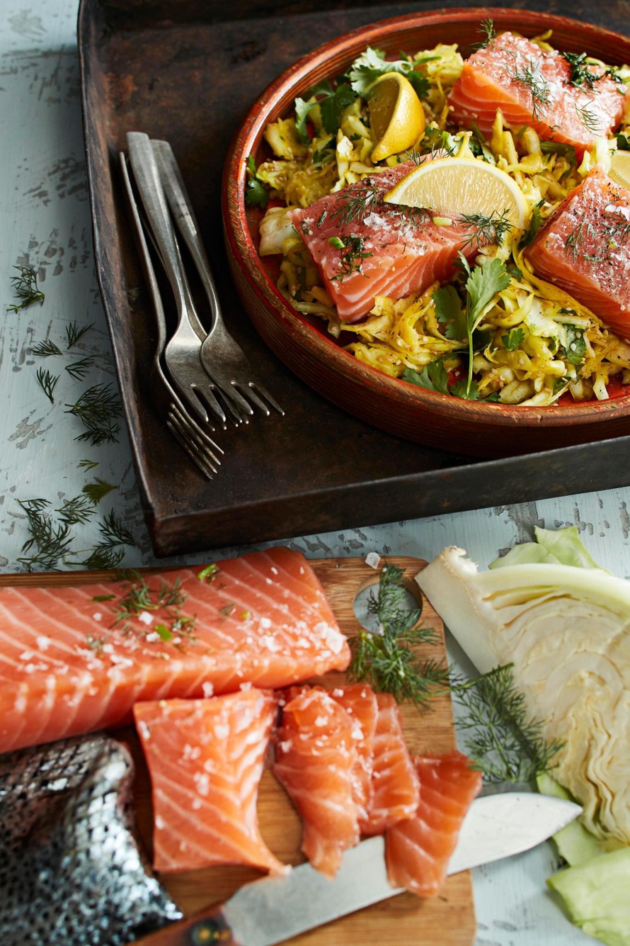 - Poista lohifileestä ruodot ja nahka. Leikkaa lohi 2–4 tasakokoiseen palaan.