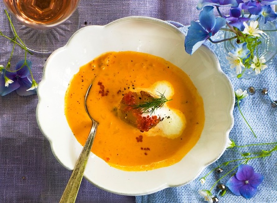 - Koristele kevyesti vaahdotetulla kermalla, mädillä ja tillillä. Nosta tarjolle.