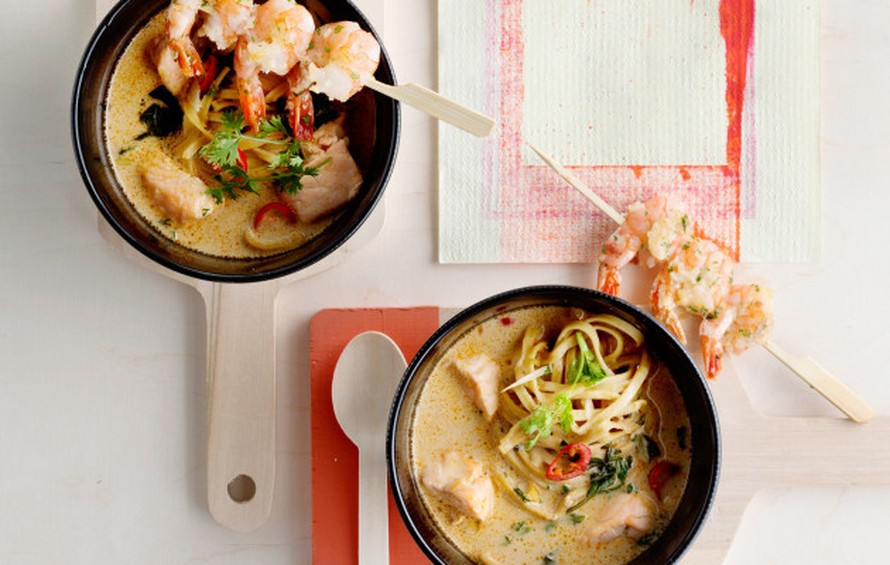 Alkuperäisessä ohjeessa kehotetaan nauttimaan keitto katkarapuvartaiden kanssa, mutta mä olen tehnyt pelkän keiton. Tietty katkisvartaitakin vois kokeilla, eivät vaikuttaneet kovin vaikeilta. Niiden ohjeen löytää linkistä.