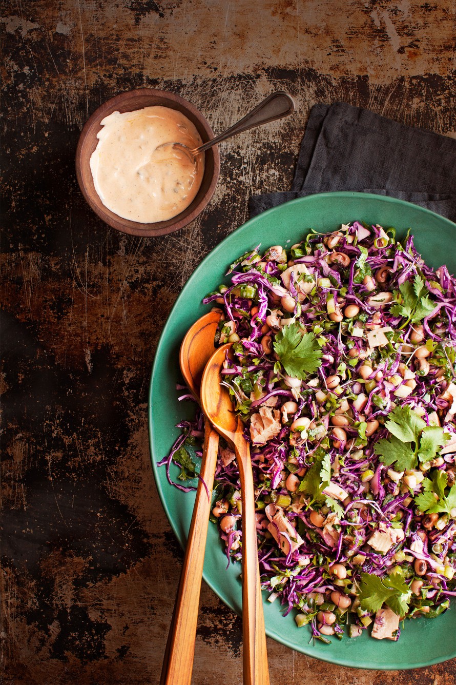 - Hienonna kevätsipulit ja yrtit. Valuta tonnikala. Huuhtele mustasilmäpavut. Lisää ainekset salaattiin.