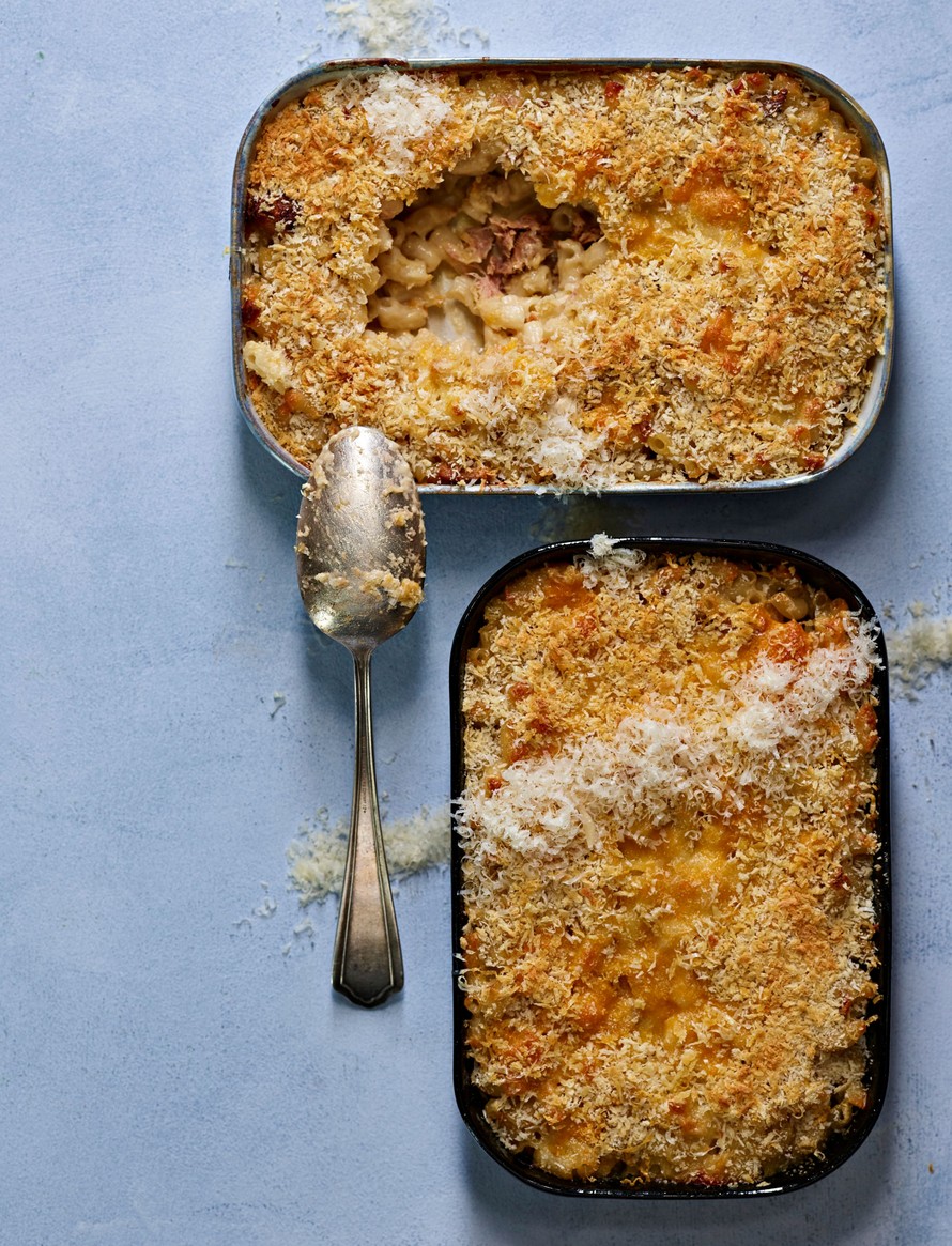 - Valuta tonnikala ja kääntele makaronien joukkoon. Kaada uunivuokaan.