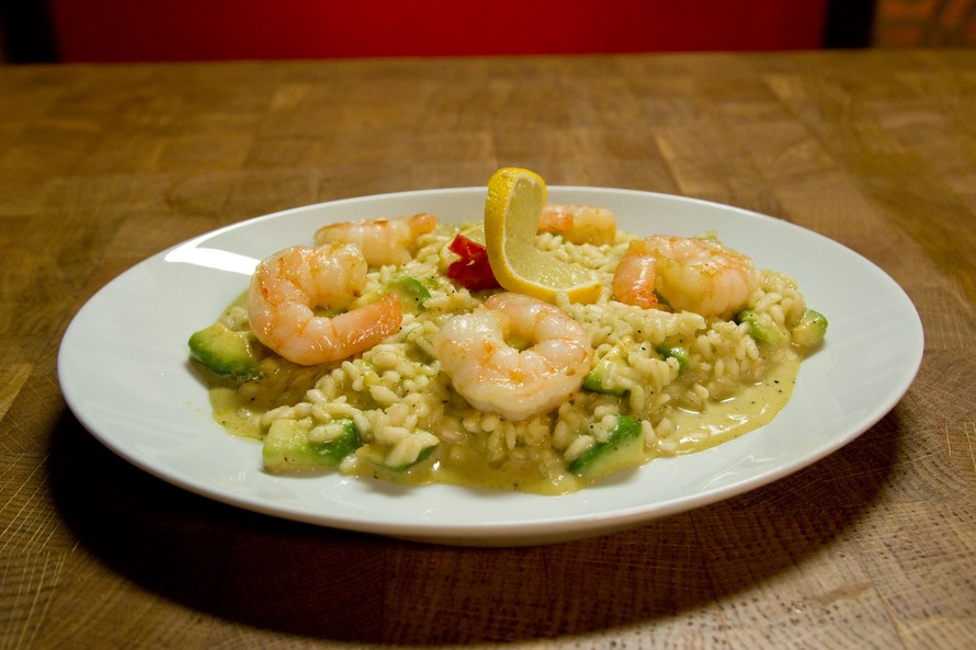 Avokadorisottoa ja tiikerirapuja