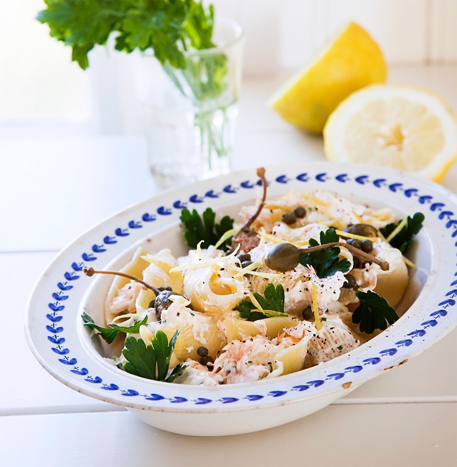 Kylmä savukalakastike valmistuu nopeasti pastan keittämisen aikana.