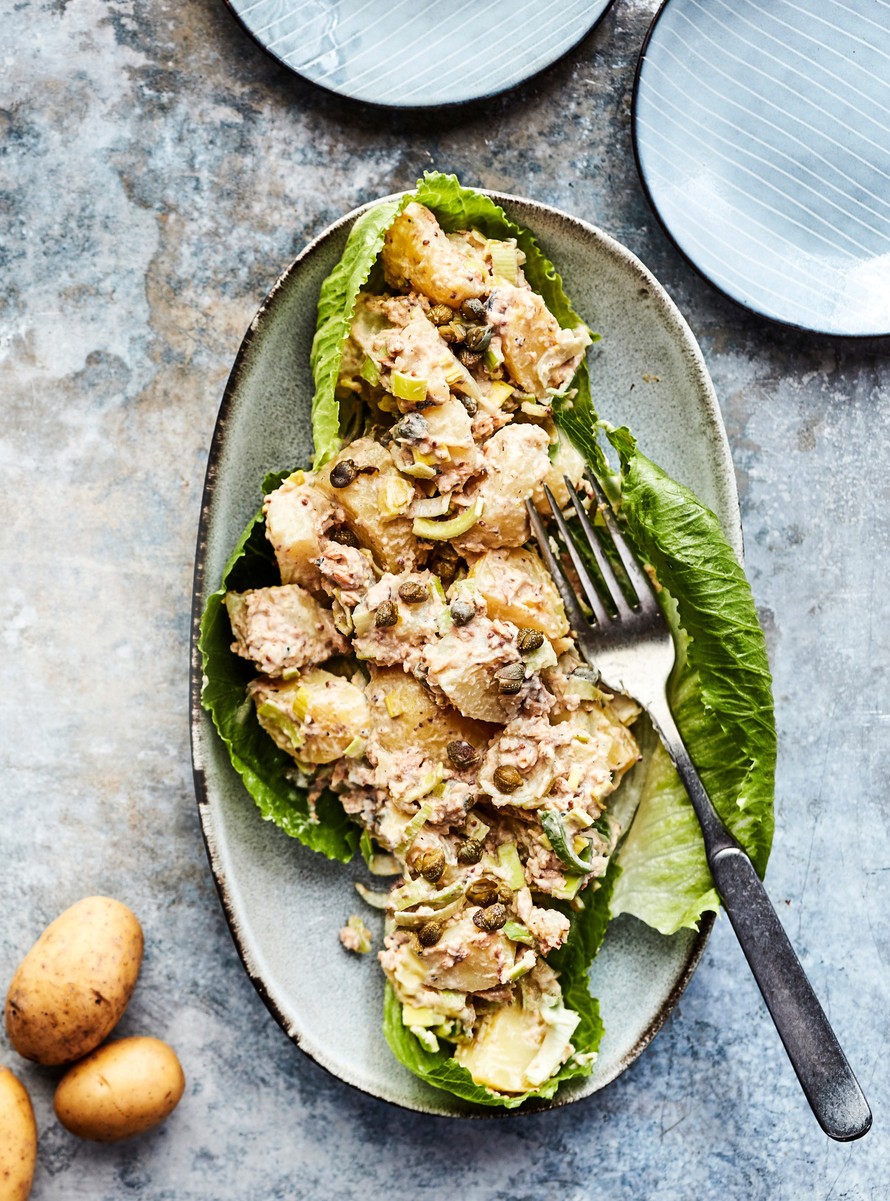 Tähteeksi jääneet keitinperunat pyöräytetään raikkaan makuisessa jogurttikastikkeessa, jossa on maukasta luonnonkalasäilykettä, kokojyväsinappia ja sitruunaa.