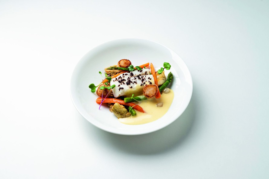 Höyrytettyä turskaa, kampasimpukkaa ja ohraa