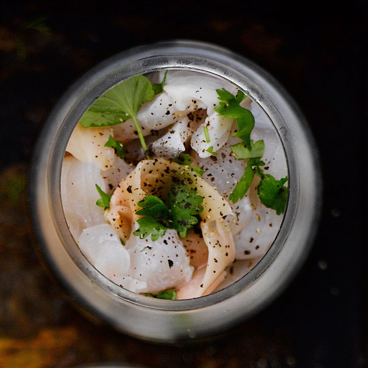 - Mausta kala öljyllä, pippurilla, valutetuilla inkiväärilastuilla ja korianterilla juuri ennen tarjoamista.