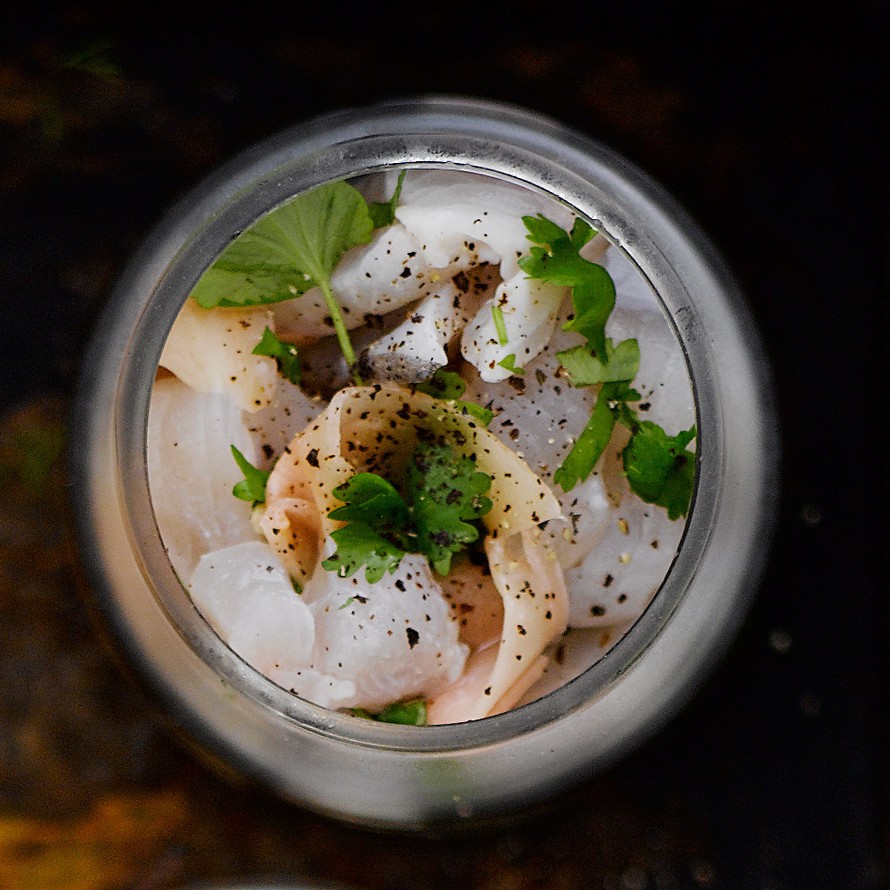 Pidätkö japanilaisesta? Graavattu siika raakakypsennetään nopeasti riisiviinietikalla ja tarjotaan säilötyn inkiväärin ja tuoreen korianterin kanssa.