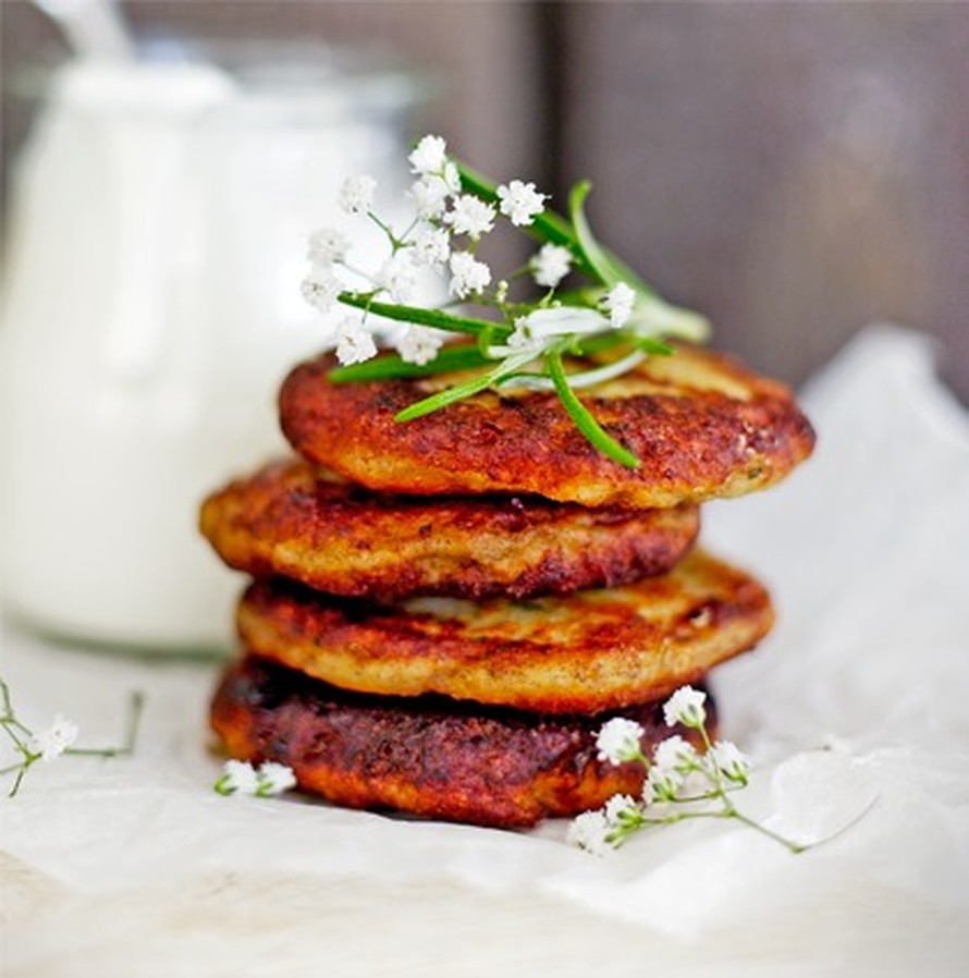 - Muotoile taikinasta kostein käsin noin sentin paksuisia pieniä pihvejä. Paista pihvejä kuumassa rasvassa noin 2 minuuttia puoleltaan. Tarjoa pihvit keitettyjen perunoiden ja tillillä maustetun kermaviilin kanssa.