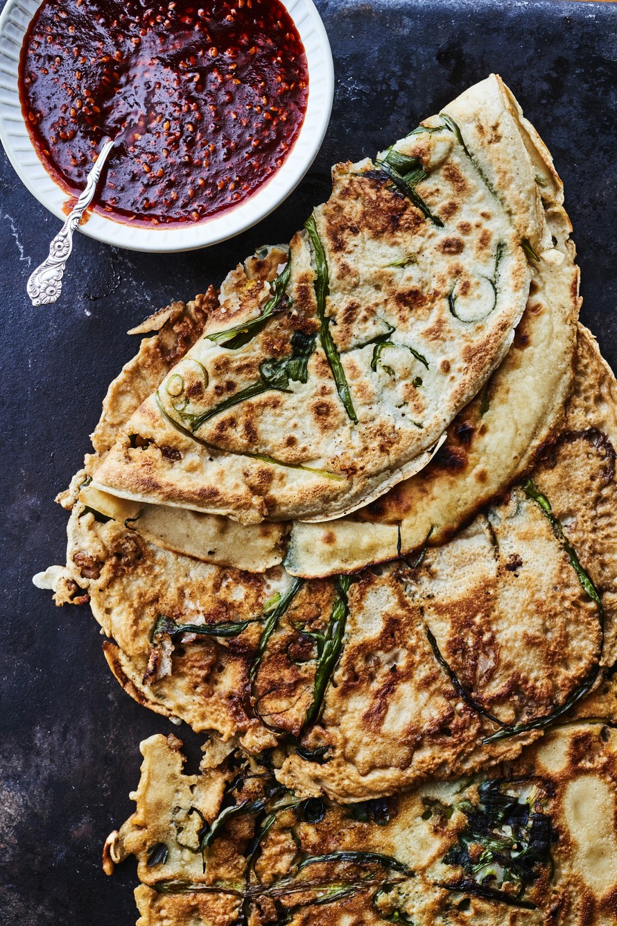 Korealainen pannari tehdään vehnä- ja riisijauhoista. Täytteet vaihtelevat, mutta yksi löytyy joukosta aina: kevätsipuli.