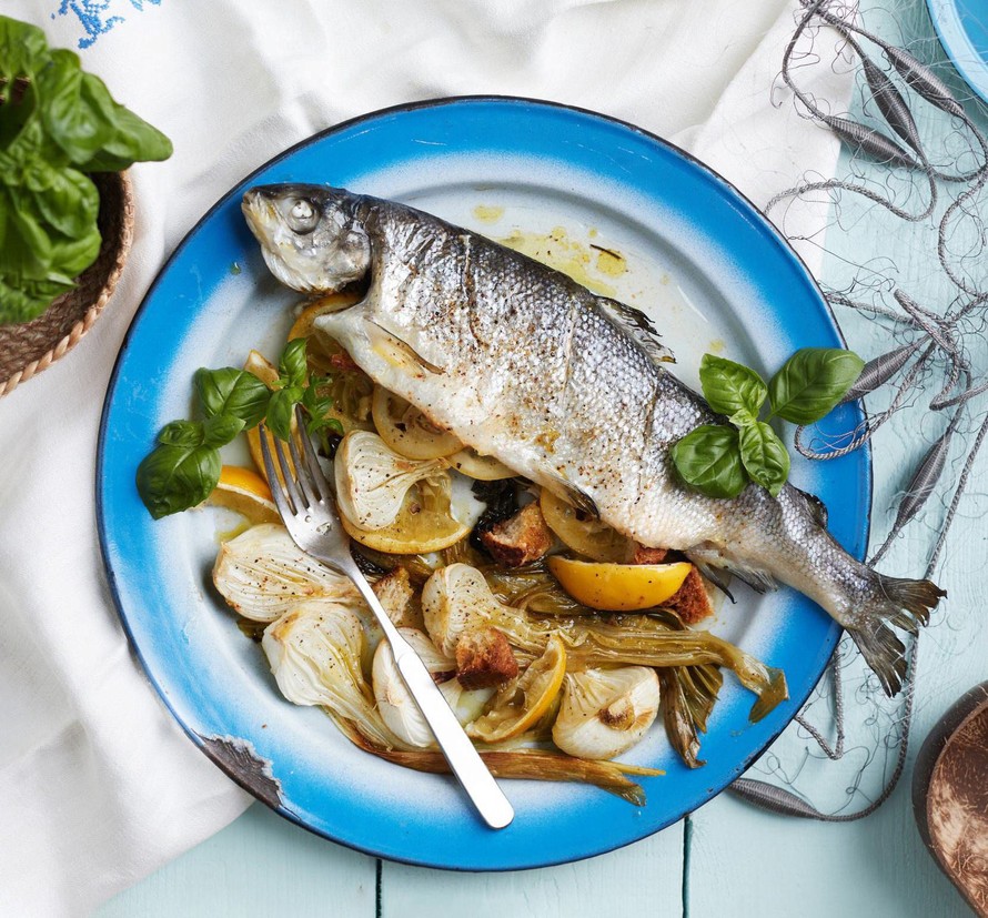 Sipulit ja sitruunat paistuvat maukkaiksi samalla uunipellillä täytetyn siian kanssa.