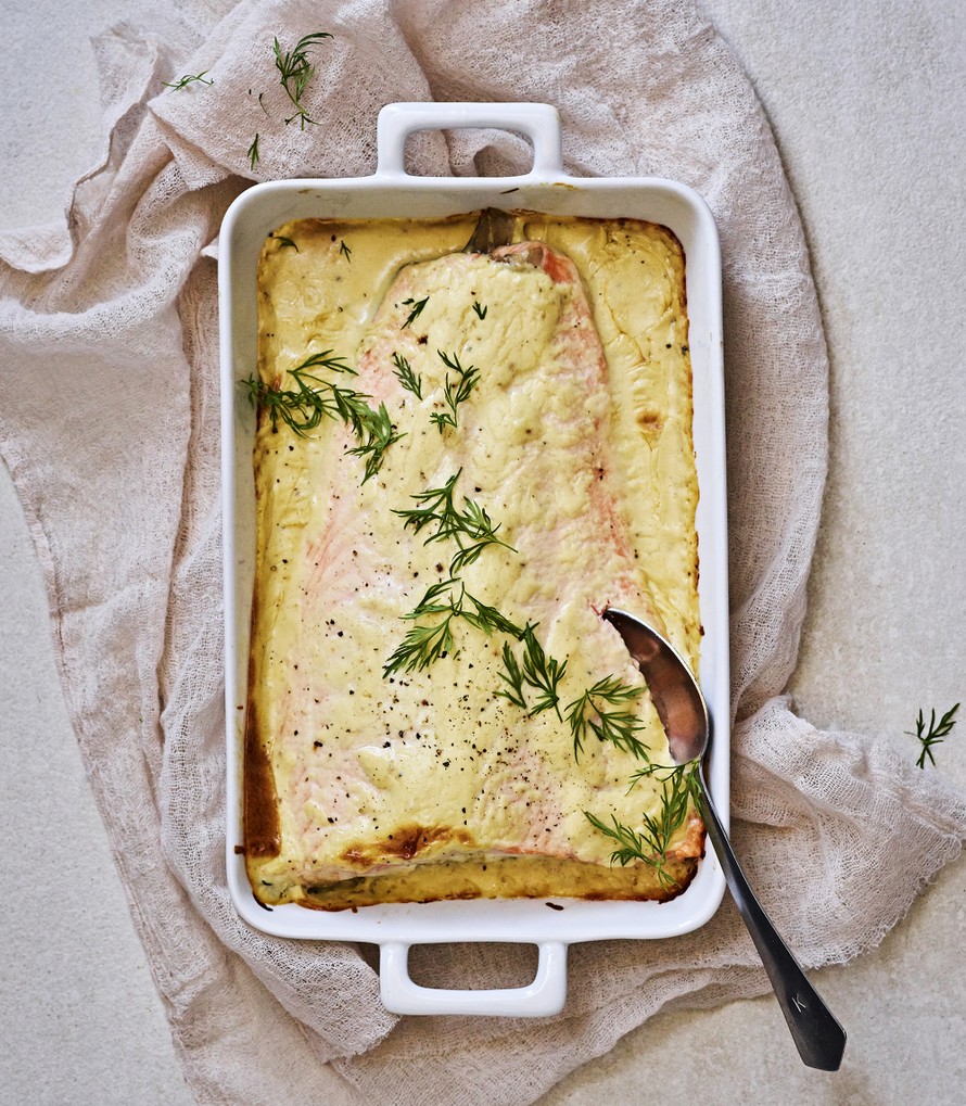 Mehevän uunilohen salaisuudet? Riittävän alhainen uuninlämpö ja ranskankermatäkki. Kypsentämisaika vaihtelee lohifileen paksuuden mukaan, mutta muuten tämä kotiruoka on helppoakin helpompi.