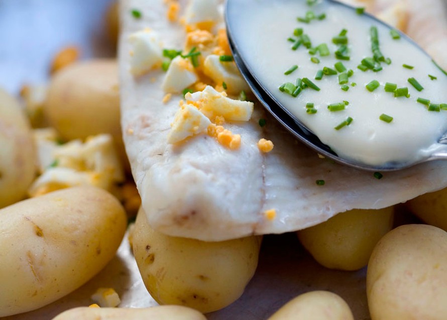 - Tee kastike. Kuumenna voi kattilassa. Sekoita joukkoon jauhot. Kaada puolet maidosta kattilaan ja sekoita tasaiseksi. Lisää loppu maito. Keitä kastiketta miedolla lämmöllä koko ajan sekoittaen noin viisi minuuttia. Hienonna kastikkeeseen munat. Mausta hienonnetulla ruohosipulilla, suolalla ja pippurilla. Tarjoa höyrytetty kala munakastikkeen kanssa. Lisukkeeksi sopivat parhaiten keitetyt perunat.