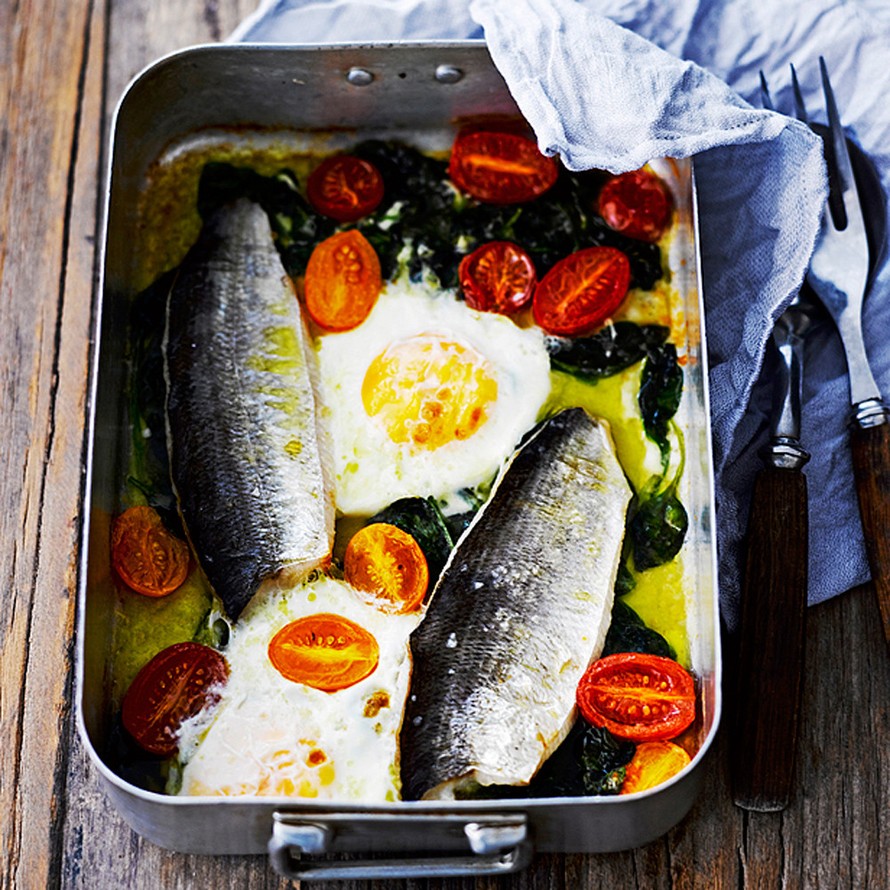 Paahdettu siika ja uunimunat.