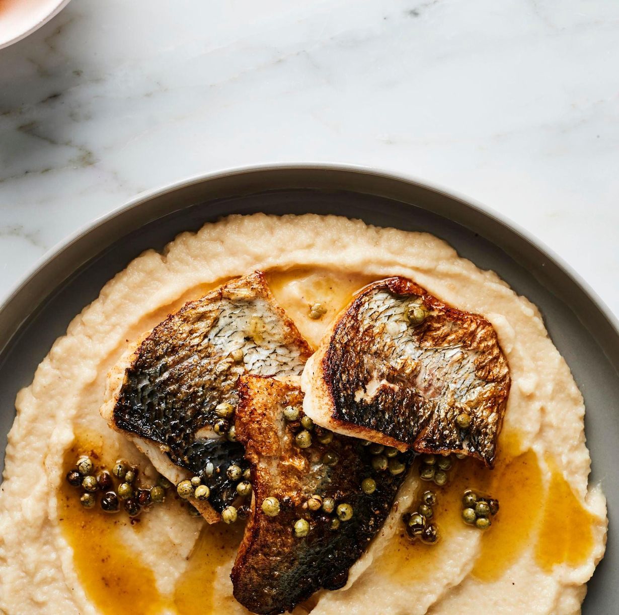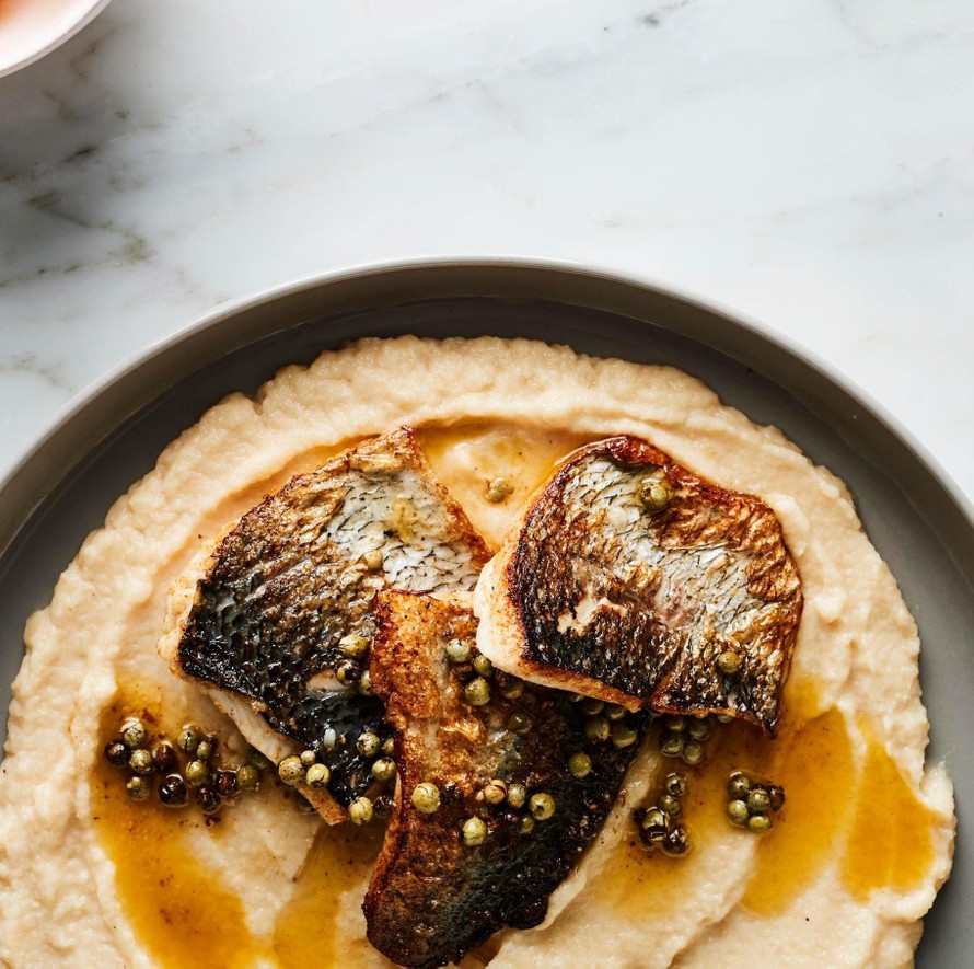 Juurisellerin hienostunut maku on oiva pari siialle. Viherpippuri-voikastike antaa annokseen klassista lumoa.