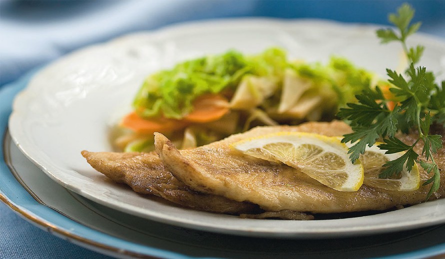 - Laita vehnäjauhot lautaselle ja kierittele ahvenfileet jauhoissa.