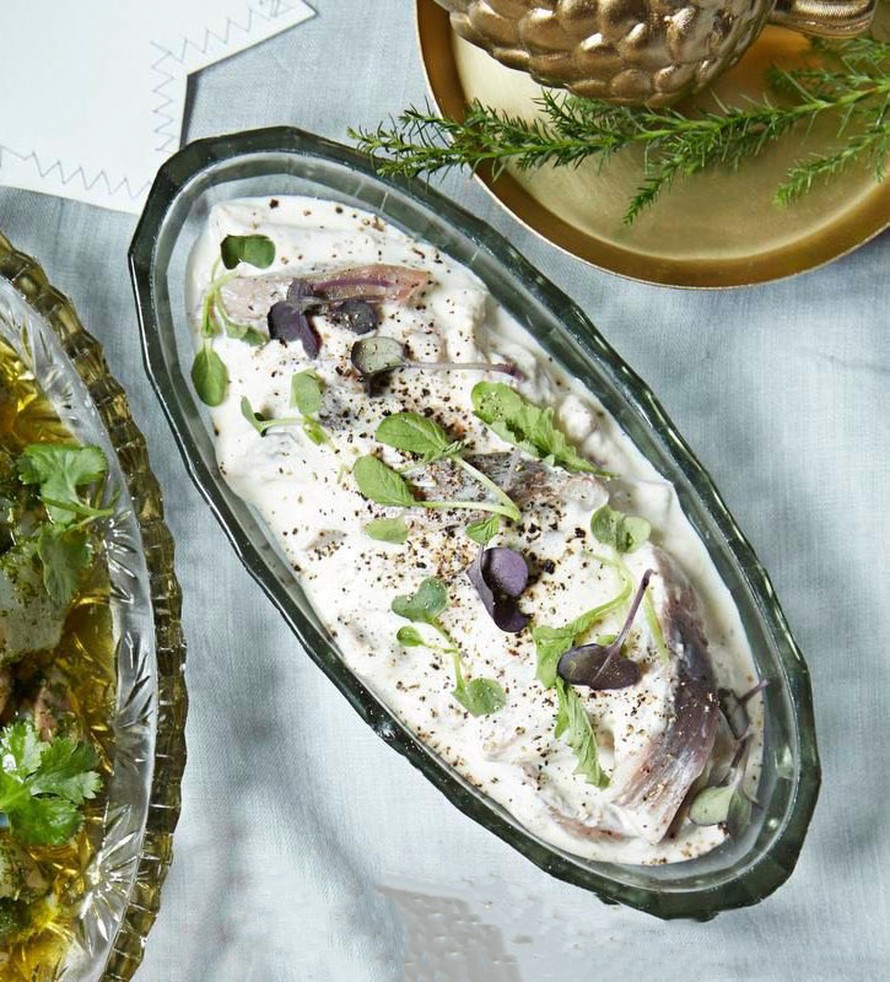 - Yhdistä silli ja kastike. Tarjoa heti tai nosta tekeytymään jääkaappiin seuraavaan päivään. Viimeistele versoilla.