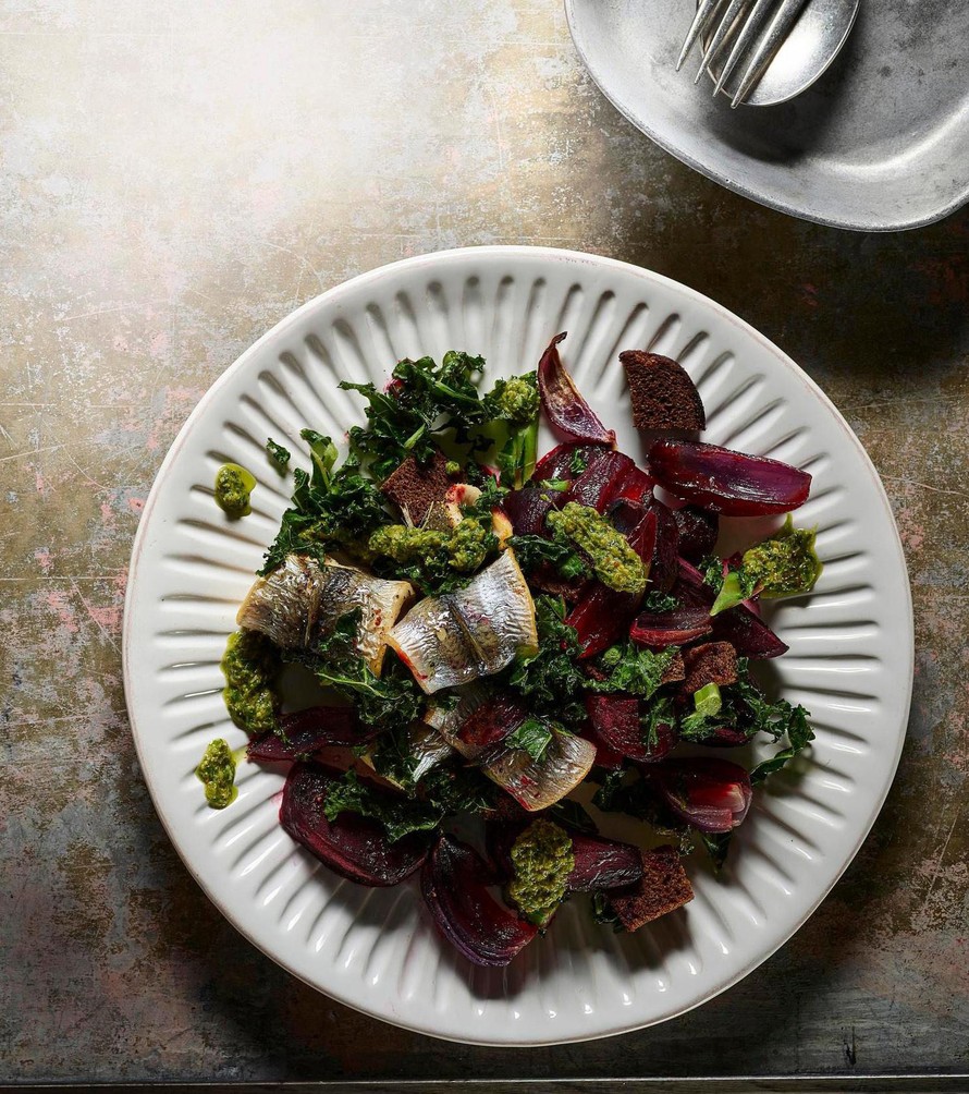Nyt sitä saa, pellin täyteen silakkaa! Paras silakka-aika ajoittuu lokakuulta toukokuulle. Tarjoa paahdettujen punajuurten ja leipäkuutioiden sekä rapsakan lehtikaalin kanssa.