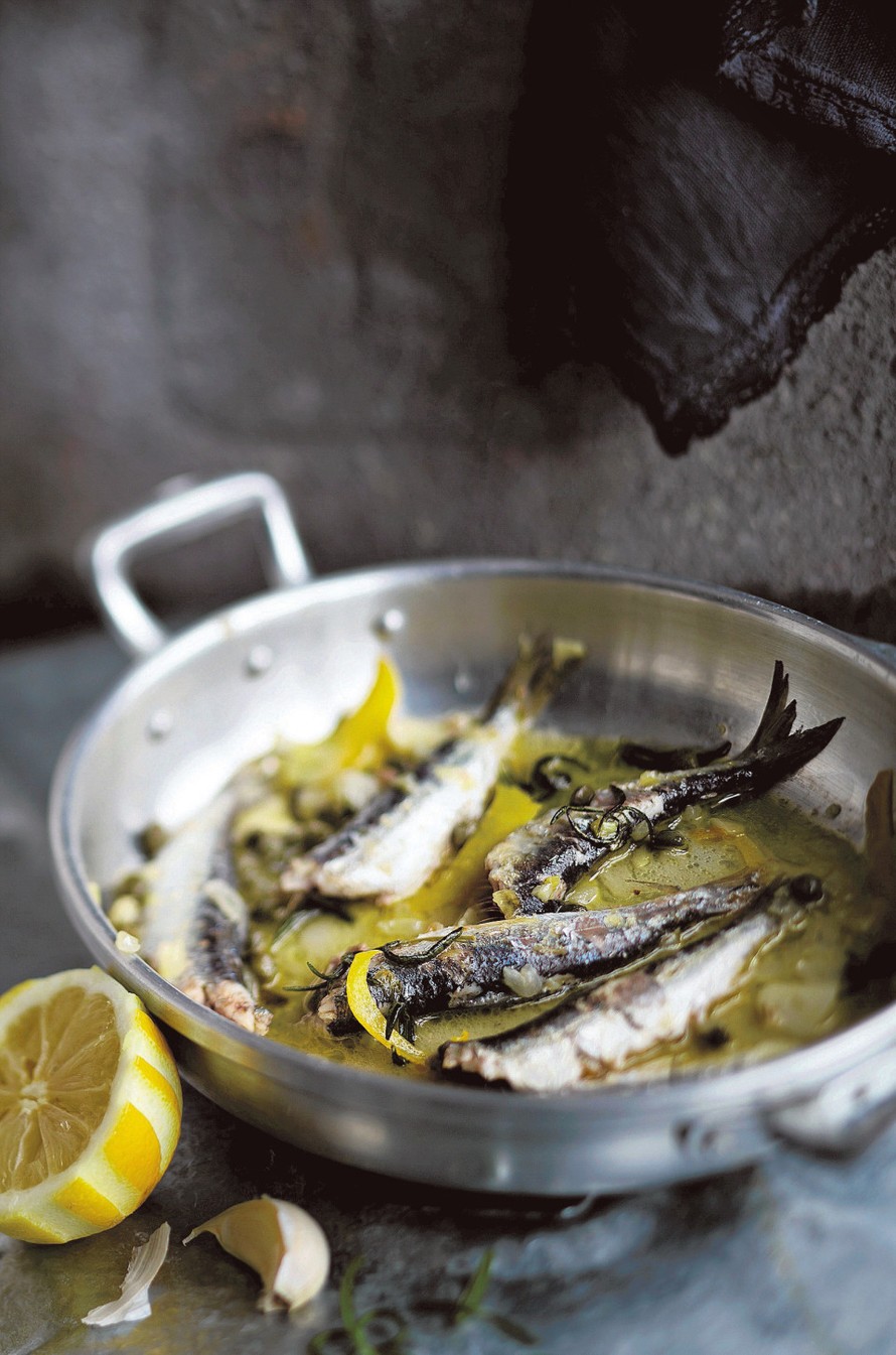 - Lisää pannulle sitruunan raastettu kuori ja mehu, hunaja, kaprikset ja vesi. Kiehauta kastike.