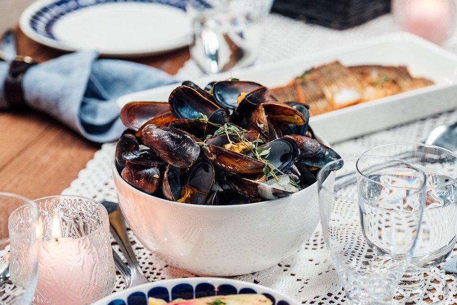Chisun päivän illallisella Vain elämää -ohjelmassa nautitaan valkoviinissä keitetyistä sinisimpukoista.