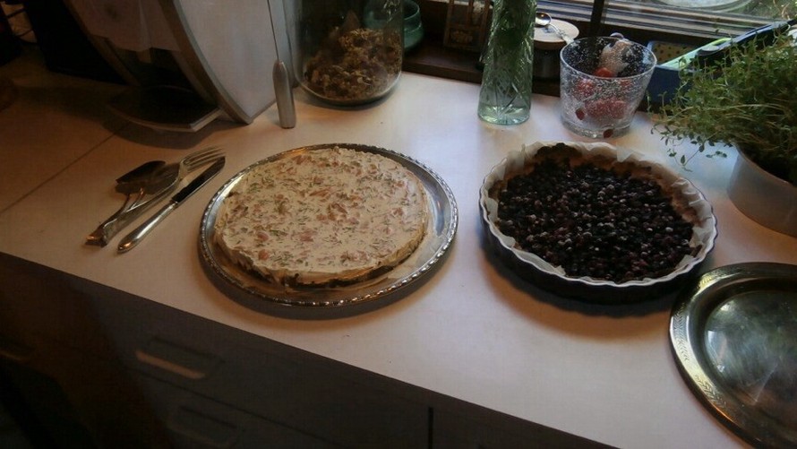 Pohja: -aja tasaiseksi monitoimikoneessa ja taputtele kelmutettuun irtopohjavuokaan ja laita pakkaseen täytteenteon ajaksi. Täyte: -liota liivatteet ja liuota ne tilkkaan kalalientä. Sekoita kaikki aineet ja lisää liivateliuos. Laita massa vuokaan ja hyydytä jääkaapissa vähintään 4-5 tuntia. Tarjoa salaatin kanssa. Juomaksi esim Riesling, jossa hiukan jäännössokeria.