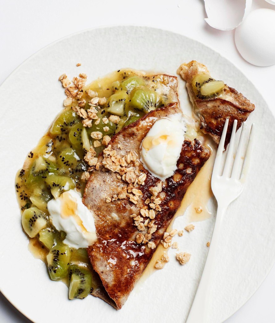 Oheisessa reseptissä letut tarjotaan kiiveistä valmistetun siirapin, jogurtin ja granolan kanssa. Kiivisiirapin voit kuitenkin halutessaan vaihtaa helposti tuoreisiin paloiteltuihin hedelmiin ja vaahterasiirappiin.