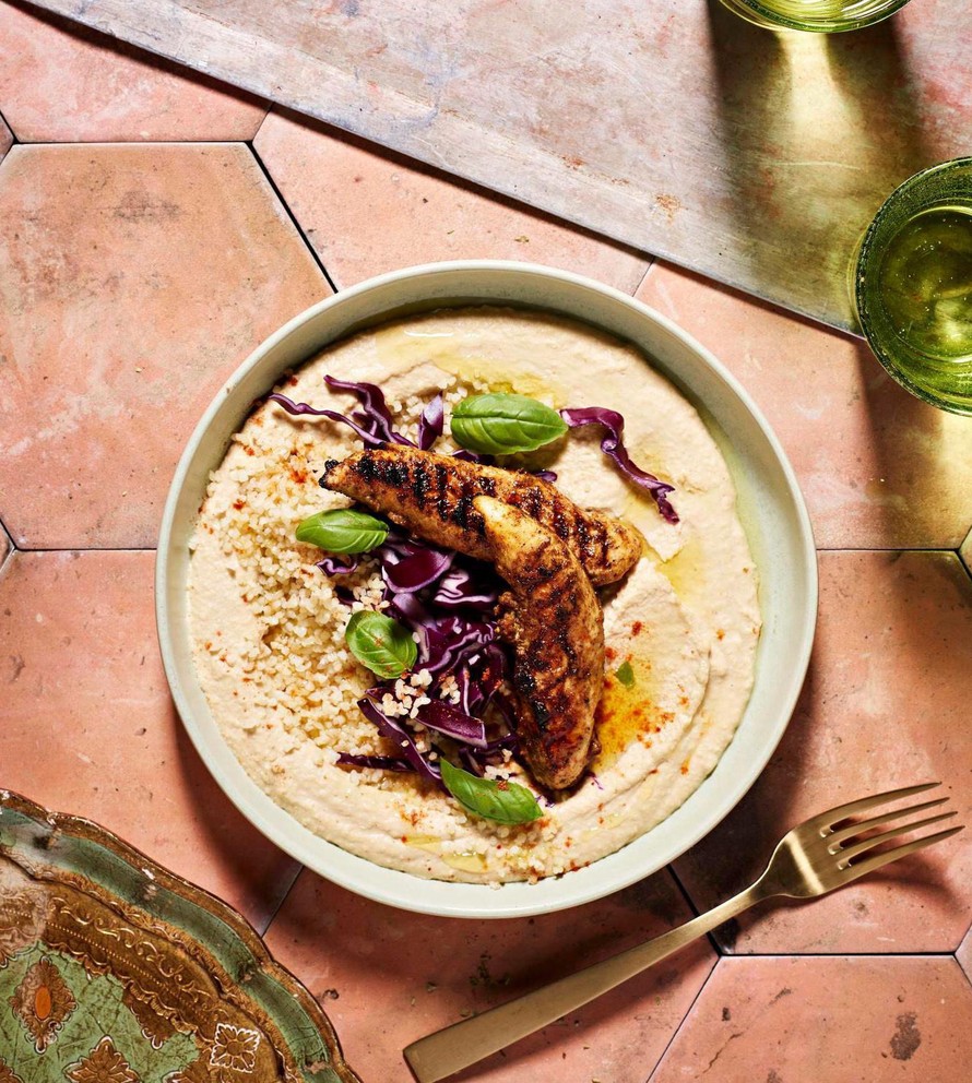 Mausteinen broileri ja pehmeä hummus ovat kielen vievä pari.