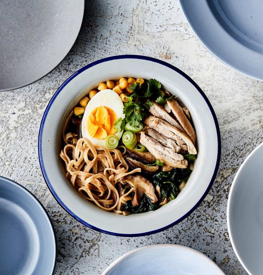 Höyryävä pikaramen syntyy misokeittoaineksista.