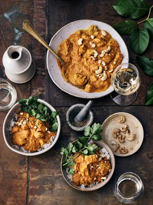 Paloittele broileri. Kuori ja hienonna sipulit. Paista broileria öljyssä kattilassa 5–6 minuuttia. Lisää sipulit, vesi, liemikuutiot ja sahrami. Keitä 10 minuuttia.